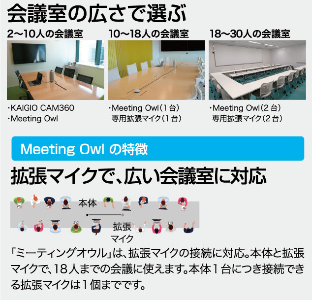 ●誰が話しているかわからない ●複数のPCでハウリングしてしまう ●機材の接続に手間取り、会議の開始が遅れる ●離れた席の人の発言がうまくひろえない